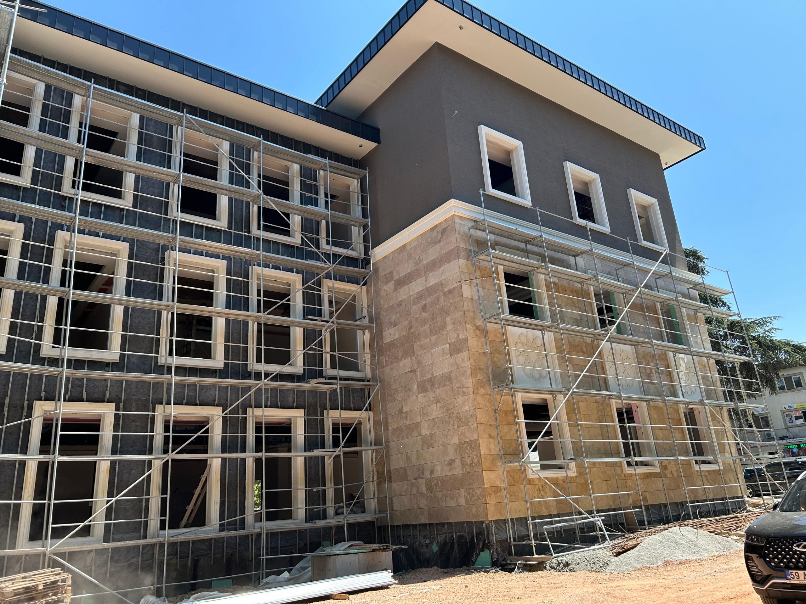 PROJELER GÖLCÜK HÜKÜMET KONAĞI KULLANILAN KAPLAMA – DOĞAL TAŞ KAPLAMA İŞVEREN – EKŞİOĞLU İNŞAAT TOPLAM UYGULAMA – 6000 M² BAŞLAMA / TESLİM TARİHİ – OCAK 2025 / TEMMUZ 2025